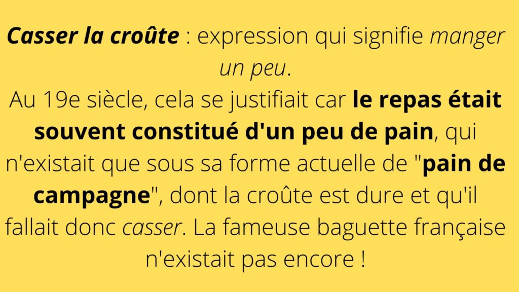 Mais revenons à Jean Valjean. Il quitte la ville de Dignes et s’en va sur les chemins, avec assez d’argent grâce à la vente de l’argenterie de Monseigneur Myriel. A un moment donné, il s’arrête dans la campagne pour casser la croûte (expression qui signifie manger un peu de pain, car il fallait casser la croûte épaisse du pain, la baguette n’existant pas encore. A cette époque, il n’y avait que ce qu’on appelle aujourd’hui des pains de campagne).