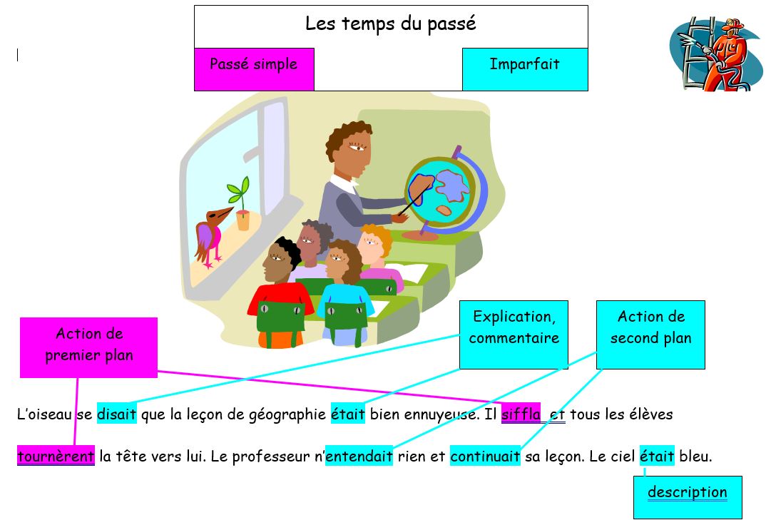 ou quand utiliser le passé simple, l’imparfait, le passé composé et le plus que parfait ? Objectif du cours 👉 Comprendre quand et pourquoi on emploie l’imparfait, le passé simple, le passé composé et le plus-que-parfait.👉 Savoir reconnaître leurs valeurs dans un texte narratif. 1. Le contexte : un voyage dans le temps… narratif Imagine…